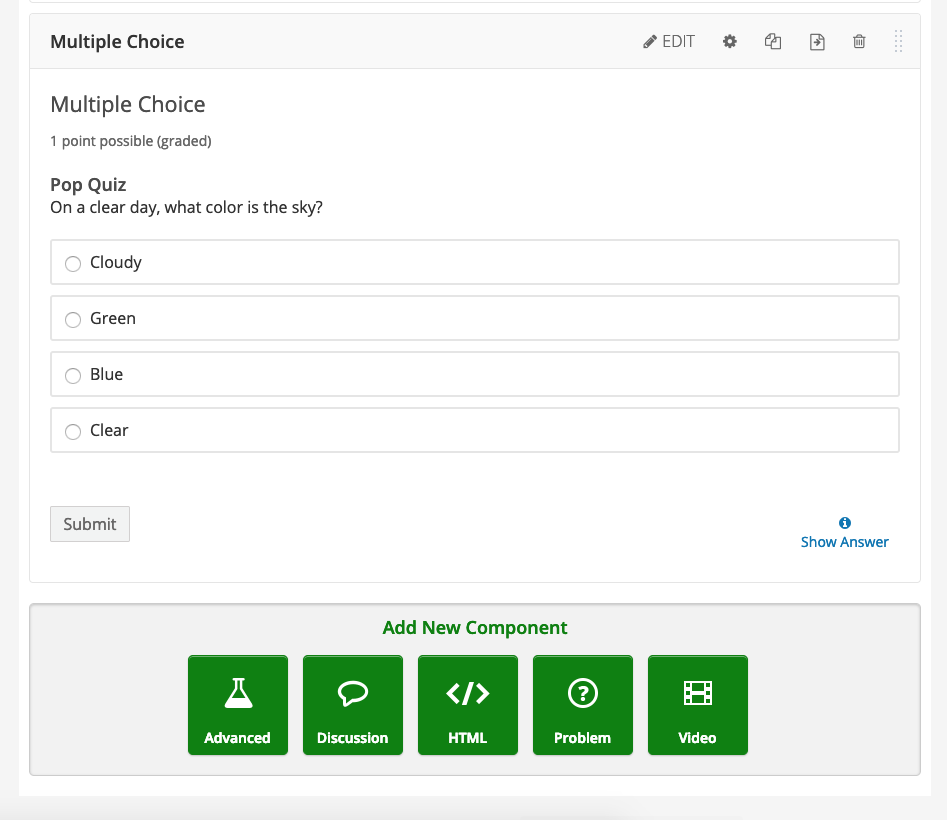 The backbone of your course is how it is organized. Studio offers an Outline editor, providing a simple hierarchy and easy drag and drop to help you and your students stay organized.